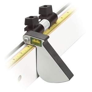 Product Description : Curved Stop attaches to the top of our 3" tall Ultra Track. Nothing is more indispensable when woodworking then a good stop system. Stop arm is 3/4" thick phenolic and rotates on a stainless steel bolt. Stop arm automatically lifts when stock up to 7/8" thick is pushed against it. Rotation tension is adjustable. Finger grip makes it easy to flip arm up. Includes a cursor to use with a Ruler Bar (4824 or 4848) and 3/4" subfence (4424F or 4448F), order separately.